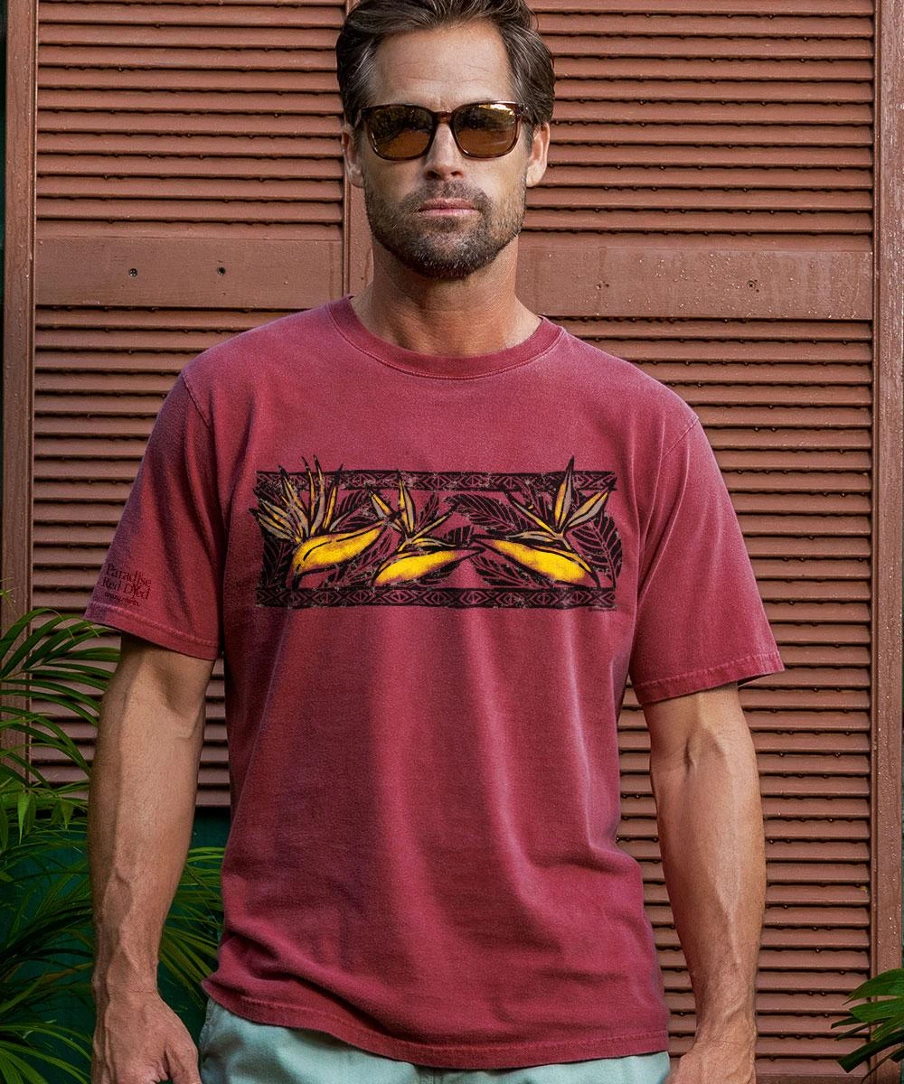 The resemblance to a colorful tropical bird makes this plant one of nature’s great and beautiful wonders. When paired with the crimson of our Paradise Red specialty dye it gives you a double douse of heavenly Hawaii. Made using our exclusive Paradise Red specialty dyeing process and featuring 100% combed ring-spun cotton. This t-shirt also has 50+ SPF protection to keep you feeling cool, calm and protected all year long. We only use environmentally friendly water-based inks that penetrate the material’s fiber resulting in more vibrant colors, softer feel and artwork that doesn’t crack or peel. Plus, it is proudly printed in the United States for quality you can see and designs that stand the test of time.