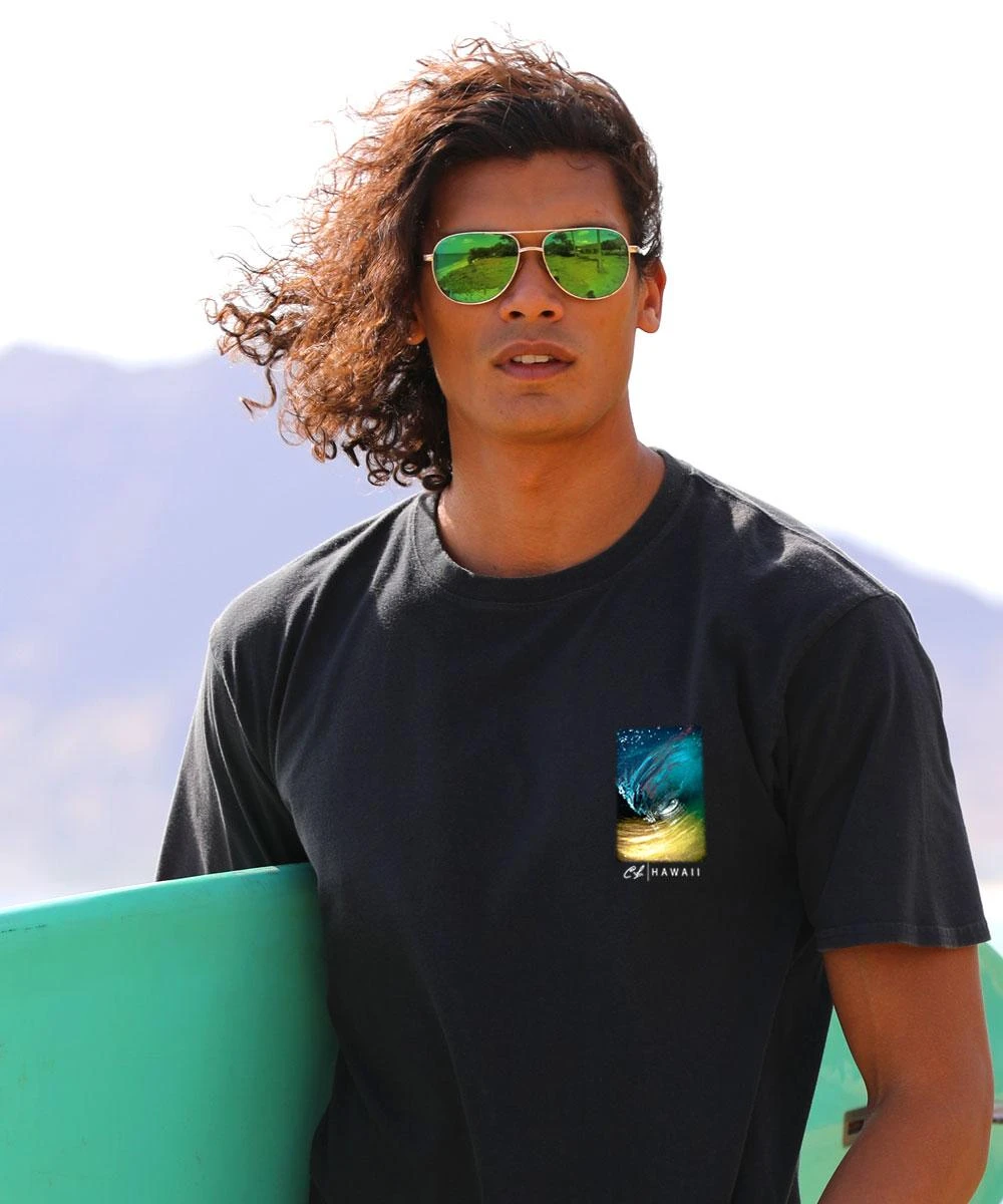 Taken on the North Shore of Oahu by legendary surf photographer Clark Little, this electric image captures the beauty and mystery of a wave at night. It’s a great reminder of the hidden artistry of the natural world and of the powerful interplay between dark and light. Made from 100% cotton that is ring-spun then combed to remove impurities, this fabric is luxuriously soft and lightweight yet incredibly strong. We only use environmentally friendly water-based inks that penetrate the material’s fiber resulting in more vibrant colors, softer feel and artwork that doesn’t crack or peel. Plus, it is proudly printed in the United States for quality you can see and designs that stand the test of time.