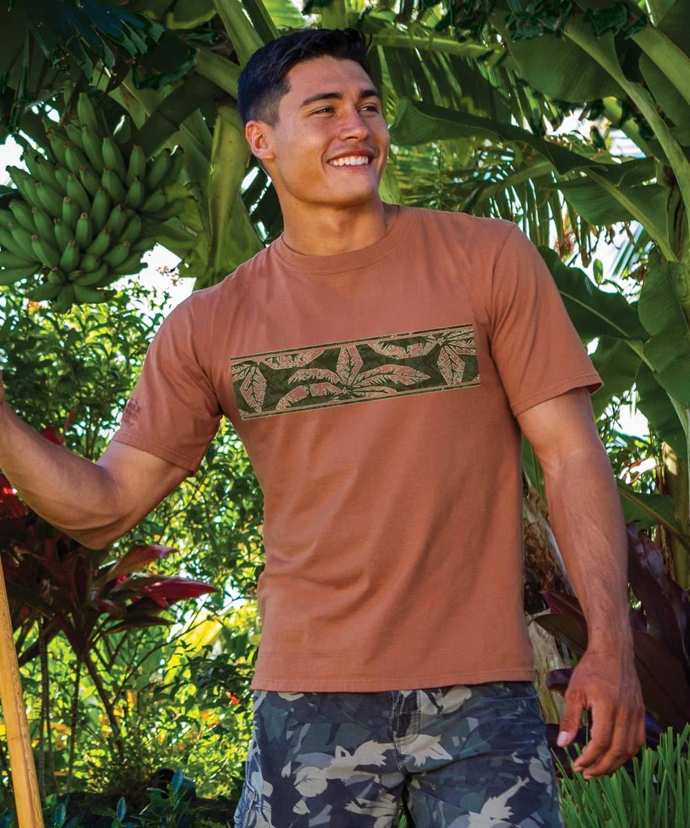The charm of this artwork lies in its simplicity and its cohesive design. A classic one-color woodcut graphic uses negative space to create a positive island vibe while the coconut leaves are perfectly complemented by the chile-dyed fabric. Made using our exclusive specialty dyeing process that uses real chile peppers and featuring 100% combed ring-spun cotton, this t-shirt has 50+ SPF protection to keep you feeling cool, calm and protected all year long. We only use environmentally friendly water-based inks that penetrate the material’s fiber resulting in more vibrant colors, softer feel and artwork that doesn’t crack or peel. Plus, it is proudly printed in the United States for quality you can see and designs that stand the test of time.