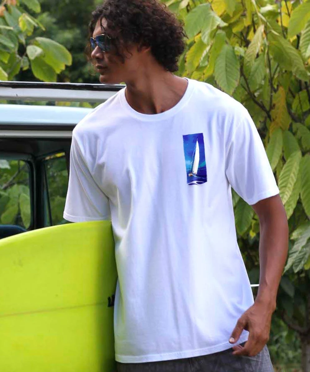 Even though they cut your sail short, storm clouds on the horizon can be a beautiful thing. This design captures nature’s sky show in a new tee that reminds us that coming home is a big part of any adventure. Made from 100% cotton that is ring-spun then combed to remove impurities, this fabric is luxuriously soft and lightweight yet incredibly strong. We only use environmentally friendly water-based inks that penetrate the material’s fiber resulting in more vibrant colors, a softer feel, and artwork that doesn’t crack or peel. Plus, it is proudly printed in the United States for quality you can see and designs that stand the test of time.