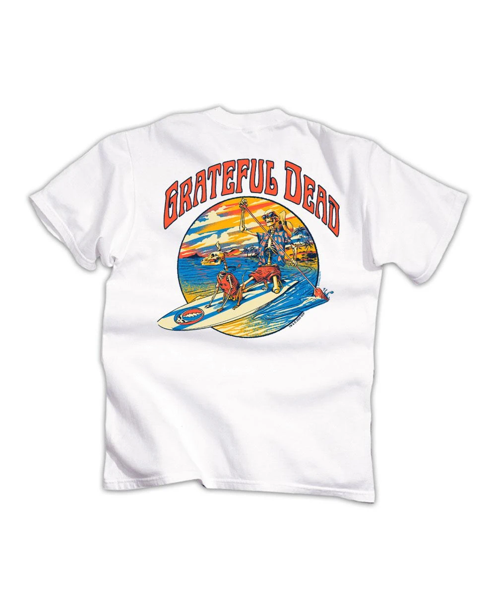 Dive into a vibrant world with Crazy Shirts’ Hawaiian-inspired tees, featuring the Grateful Dead’s iconic “Skeleton” and a skeleton dog catching waves in Hawaii. This lively design embodies pure fun and freedom, capturing the carefree spirit of the Grateful Dead. Whether surfing or spreading aloha vibes, this spirited skeleton personifies the band’s artistic identity, making Hawaiian shores come alive with groovy surf culture. Embark on a joyful adventure with our spirited t-shirts!