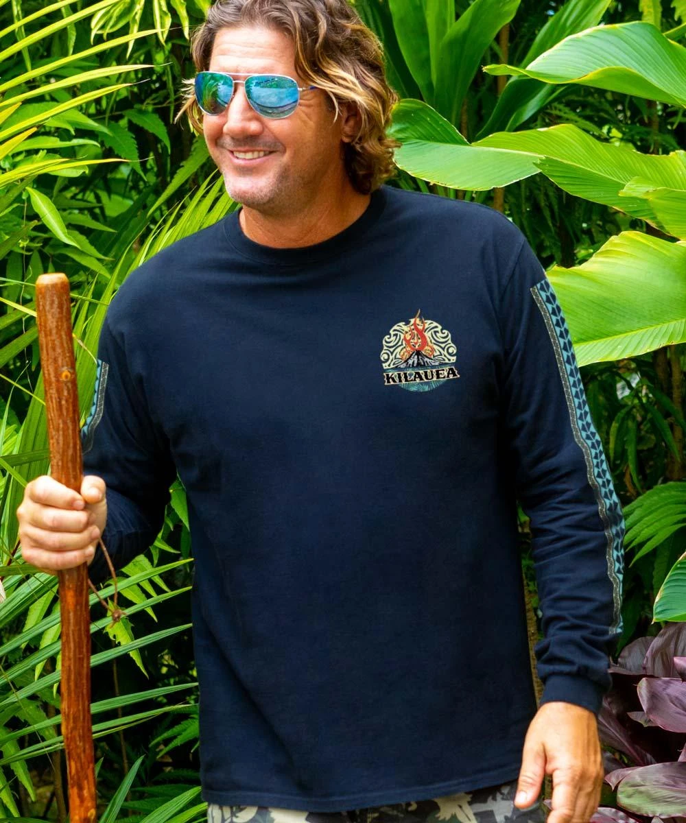 Kilauea Flame – Navy Long Sleeve Crewneck T-Shirt