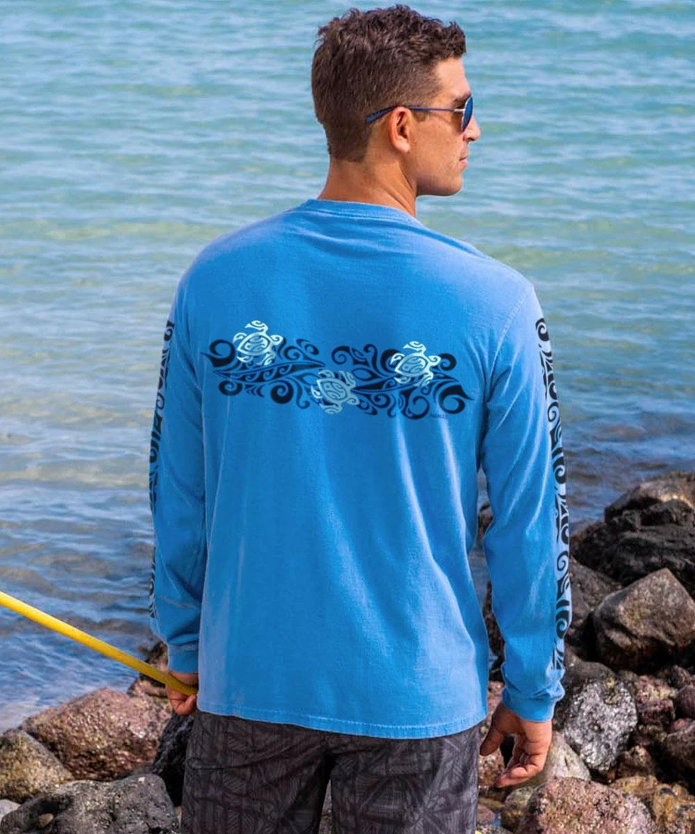Tribal Honu Band – Blue Hawaii Dyed Long Sleeve Crewneck T-Shirt